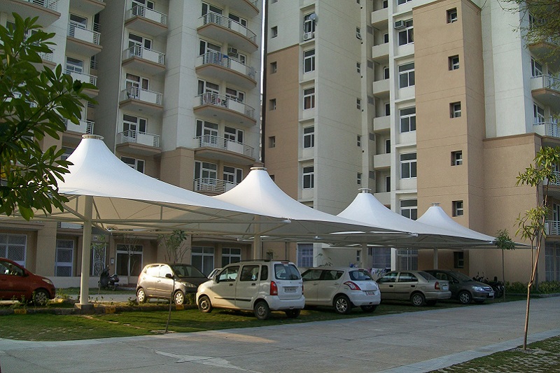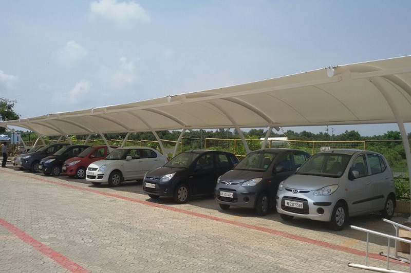 The car parking structure that protects your vehicle from outdoor weather. Top quality raw materials are used to manufacture these structures, so that they have durability and a longer life. They are available in various colors, and different shape of structure such as, Arch shape, vault shape, hyper shape, cantilever structure & conical shape. Material using membrane PVC coated & PVDF 5-10 year warranty.